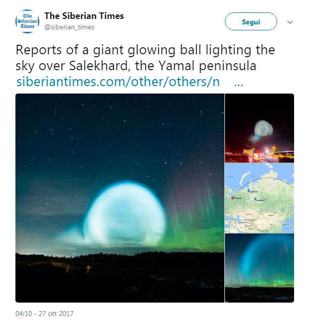 SALEKHARD – “Ufo in Siberia“: misteriose bolle di luce fotografate nei cieli di Salekhard, città a nord della Russia. Gli avvistamenti risalgono a giovedì 26 ottobre. Durante la notte, molte persone hanno fotografato una serie di figure circolari, che ricordavano molto dei dischi volanti.