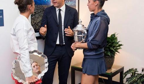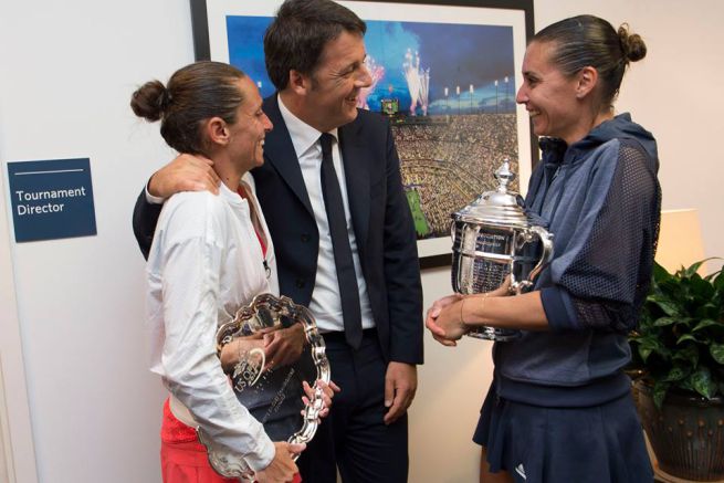 ROMA – In una foto pubblicata dal profilo ufficiale di Palazzo Chigi compare un uomo misterioso nel riflesso del vassoio che Roberta Vinci stringe orgogliosa dopo la finale degli Us Open persa contro Flavia Pennetta. Foto nella quale, nell’ordine, compaiono il premier Matteo Renzi, Flavia Pennetta, Roberta Vinci e, appunto, il riflesso nel piatto dell’uomo misterioso.