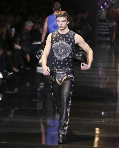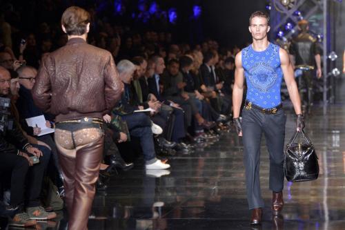 MILANO – Un moderno cowboy con il perizoma sopra i pantaloni: questo l’uomo 2014 per Donatella Versace che ha dedicato la sua collezione per il prossimo inverno a un “uomo libero di scegliere chi vuole essere”. Un messaggio chiaro contro l’omofobia.