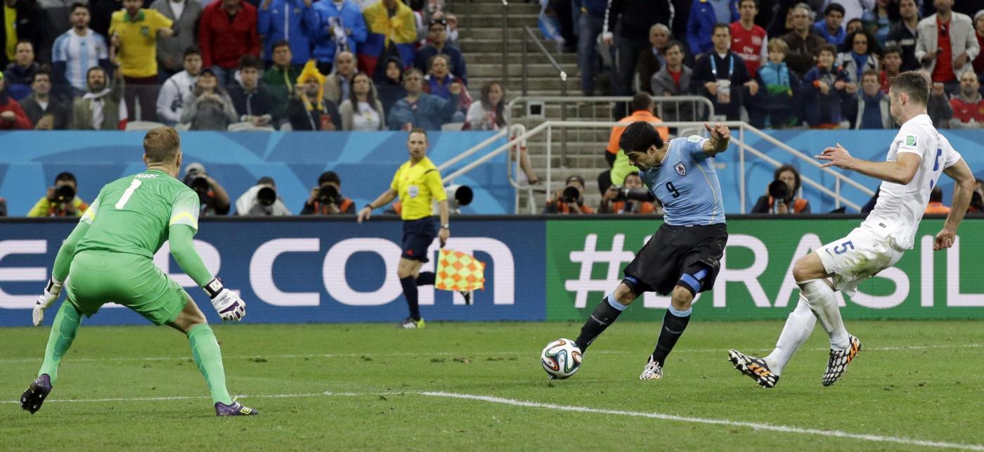 – 39′ st: rinvio di Muslera, nella metà campo avversaria, dove Cavani sfiora di testa e innesca Suarez, che entra in area dalla sinistra e fulmina Hart.