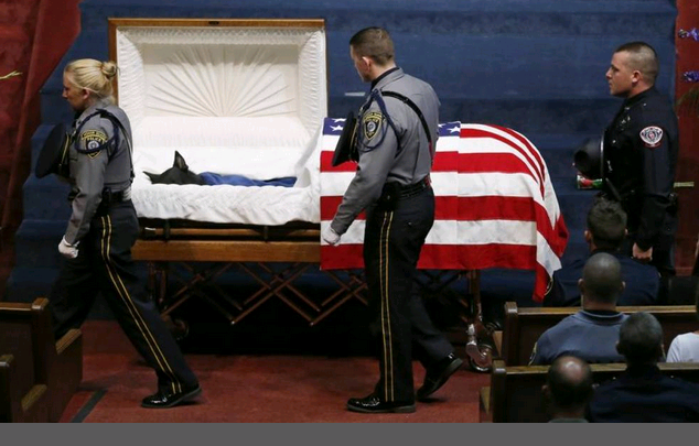 Negli Usa, i cani poliziotto vengono considerati a tutti gli effetti agenti di polizia. Se uccisi in servizio, viene organizzato loro lo stesso tipo di funerale. Le foto del funerale: