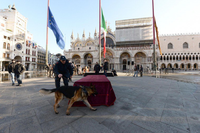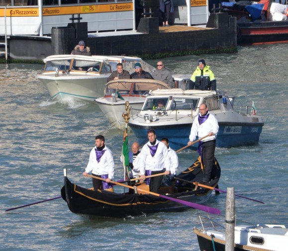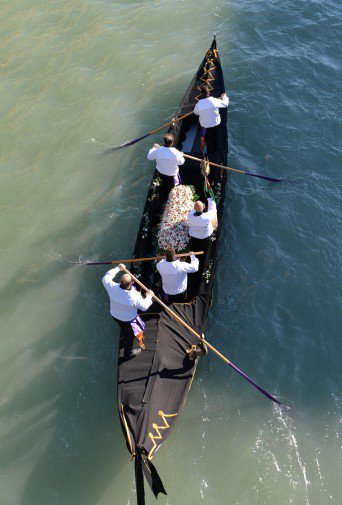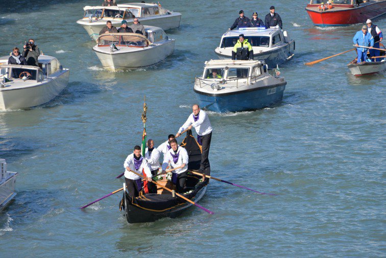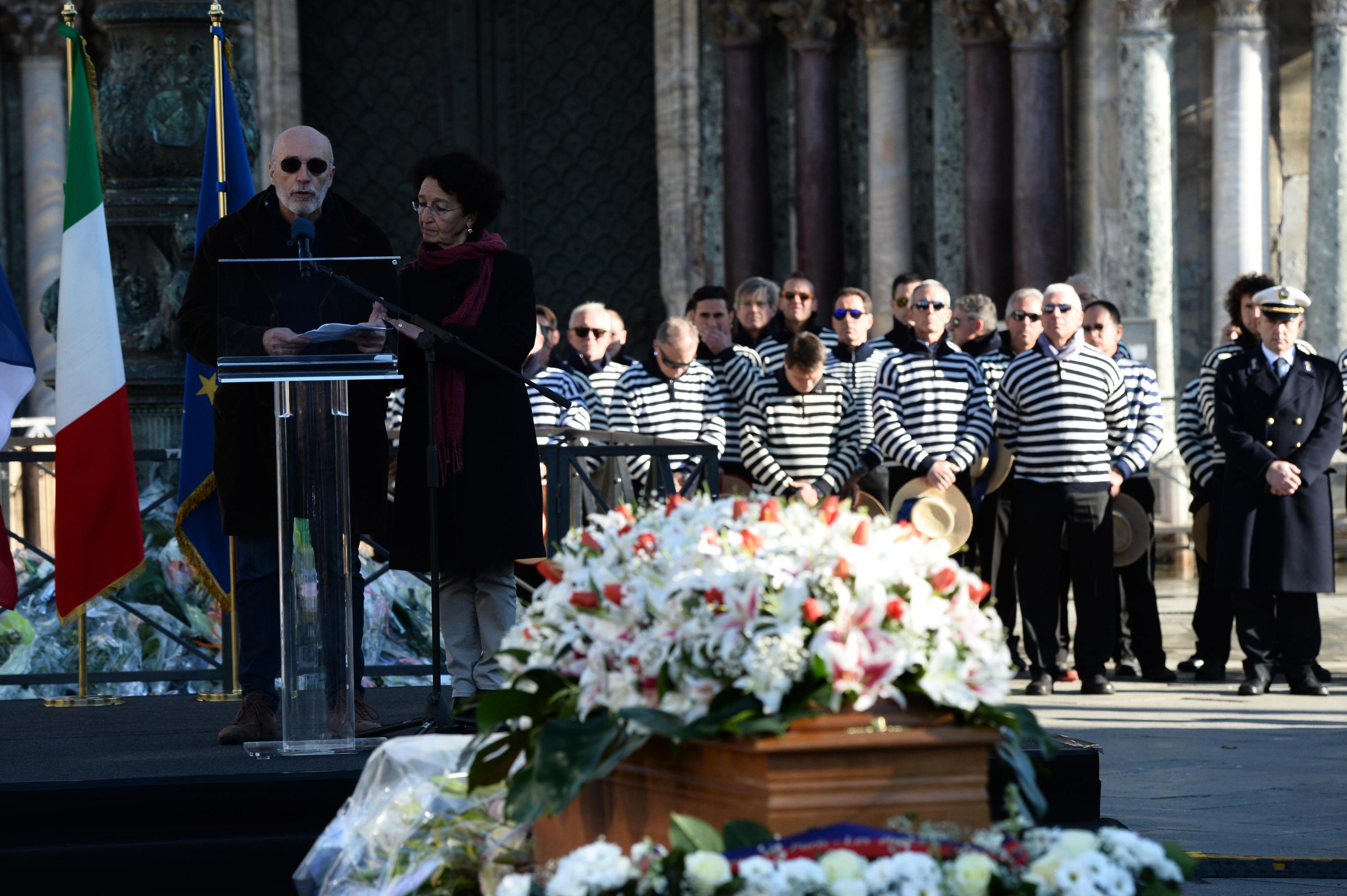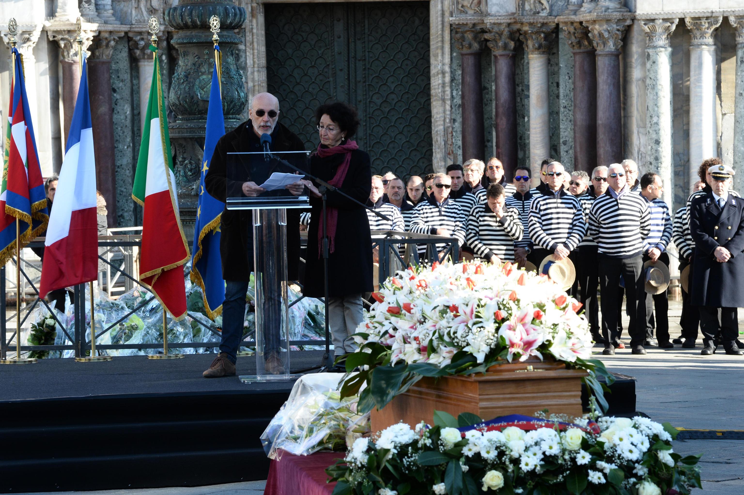 Durante la cerimonia è stato letto anche il messaggio di cordoglio del presidente francese François Hollande: ”Condivido il dolore della famiglia, famigliari e di tutta l’Italia. Valeria era venuta da noi in Francia per amore della vita e della cultura e ha trovato la morte sotto il fuoco dei terroristi”. Il feretro arriva a piazza San Marco gremita di personalità anche politiche in gondola (foto Ansa):