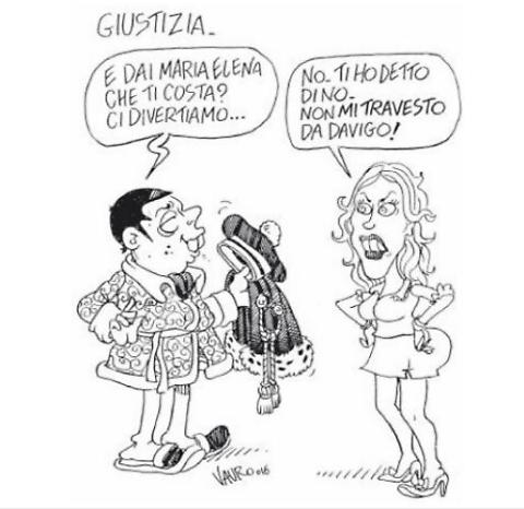 Vauro vignetta. Maria Elena Boschi a Renzi: Non mi travesto