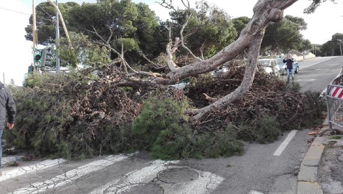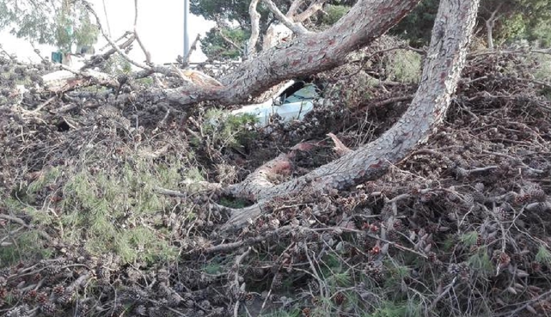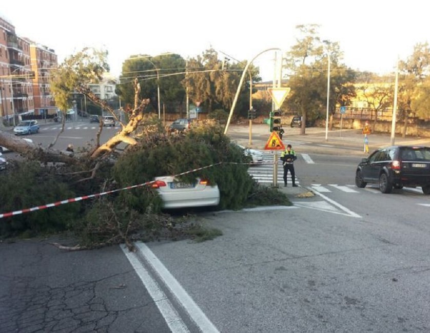 CAGLIARI – Tragedia sfiorata nel pomeriggio di domenica 21 gennaio in piazza d’Armi a Cagliari. Il forte vento di maestrale ha sradicato un pino imponente che ha centrato in pieno un’auto in transito all’altezza di un semaforo. Il conducente, un agente di polizia, è rimasto lievemente ferito. L’episodio è avvenuto poco dopo le 14.30. L’albero con tutte le fronde si è abbattuto sulla strada facendo crollare il semaforo e investendo la vettura che stava transitando in quel momento. Sul posto sono subito arrivati i vigili del fuoco, gli agenti della polizia municipale e un’ambulanza del 118, oltre ai colleghi dell’agente.