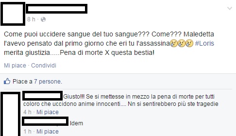 RAGUSA – “Devi morire”, “Come si fa ad uccidere sangue del tuo sangue?”, “Ci vuole la pena di morte”. I social network si infiammano contro Veronica Panarello, la mamma fermata per l’omicidio del suo bambino, il piccolo Andrea Loris Stival, ritrovato cadavere alcuni giorni fa in un canale a Santa Croce Camerina.