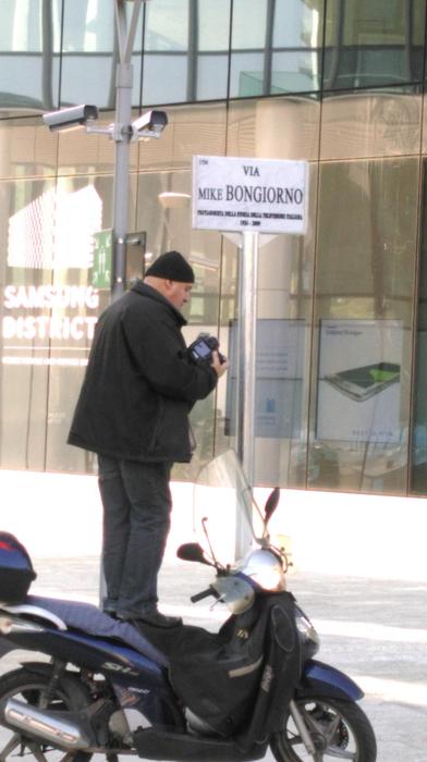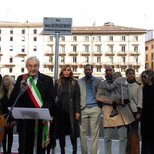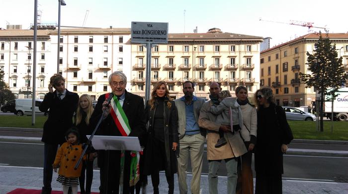 MILANO – Via Mike Bongiorno, l’hanno inaugurata mercoledì 21 ottobre a Milano, nella zona di Porta Nuova, il quartiere moderno dei grattacieli. “Dedicare una via in questo quartiere, che rappresenta l’innovazione milanese, è un segno di stima, di affetto e di gratitudine”, ha detto il sindaco Giuliano Pisapia allo cerimonia di intitolazione, al cospetto della vedova, Daniela, e dei tre figli, Nicolò, Michele e Leonardo, i nipotini e gli amici. Tra questi anche numerosi vip: da Fabio Fazio, che ieri ha fatto da battitore all’asta dei ricordi di Mike, a Ludovico Peregrini, lo storico Signor No di tante trasmissioni.