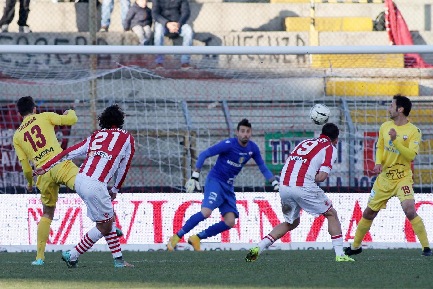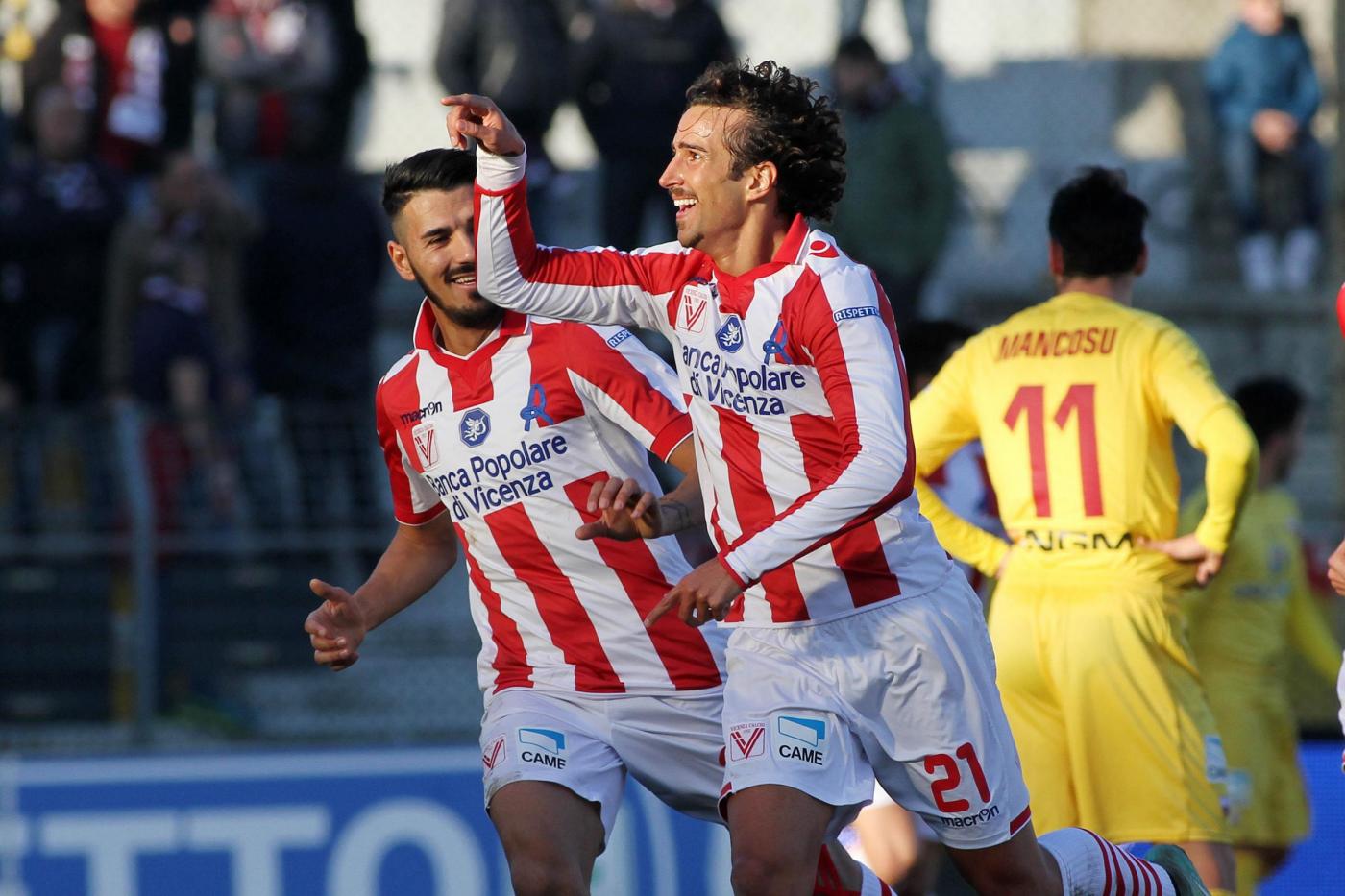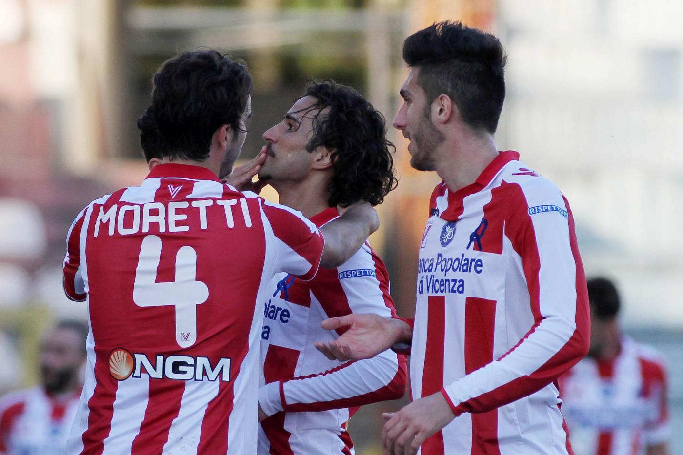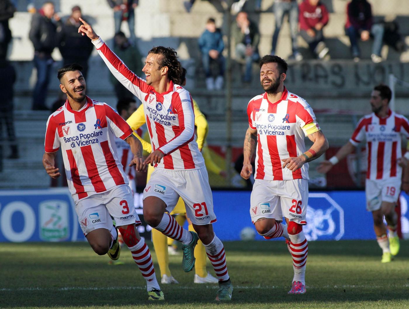 ROMA – Basta un tempo al Vicenza per regolare il Trapani, sconfitto 3-0 e mai in partita. I veneti vanno in vantaggio al 7′, su colpo di testa del difensore Brighenti su cross di D’Elia. Al 40′ raddoppio di Di Gennaro con un tiro da fuori che non lascia scampo a Marcone. Nella ripresa, con il Vicenza in pieno controllo del match, siciliani in dieci dal 14′ per l’espulsione di Nadarevic per doppia ammonizione. Nel finale, al 36′, chiude i conti Moretti. Foto LaPresse. Risultati del campionato di calcio di serie B (classifica) dopo gli incontri della 23/a giornata (Modena-Lanciano domani alle 12.30).