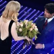 Nicole Kidman incanta tutti e si concede alle innocenti domande di Carlo Conti. “Qui è splendido, amo l’Italia da quando ho 17 anni – è il saluto di rito -. La mia città preferita è Firenze”, dice per ingraziarsi il conduttore, e poi precisa: “ma amo Roma allo stesso modo”. Conti le fa scegliere le tre canzoni della sua vita. Si parte da Heroes di David Bowie. “I veri eroi di oggi sono le persone che lavorano dietro le quinte, quelle che non ricevono premi: volontari, scienziati, sono loro per me gli eroi più straordinari”.