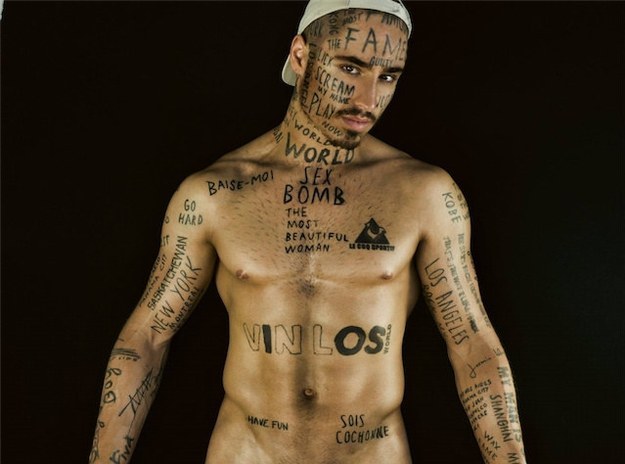 Le parole scelte sono semplicemente casuali, intenzionalmente brutte e completamente svincolate da ricordi ed emozioni. In questo modo, Vin vuole solo differenziarsi dalla massa sperando così di sfondare nel mondo della moda: “Ho voluto creare un’immagine di me che si adatti alla cultura popolare attuale fatta di sensazionalismo”, ha spiegato il modello canadese che ha anche un sito web in cui è possibile vedere altre immagini del suo corpo tatuato.