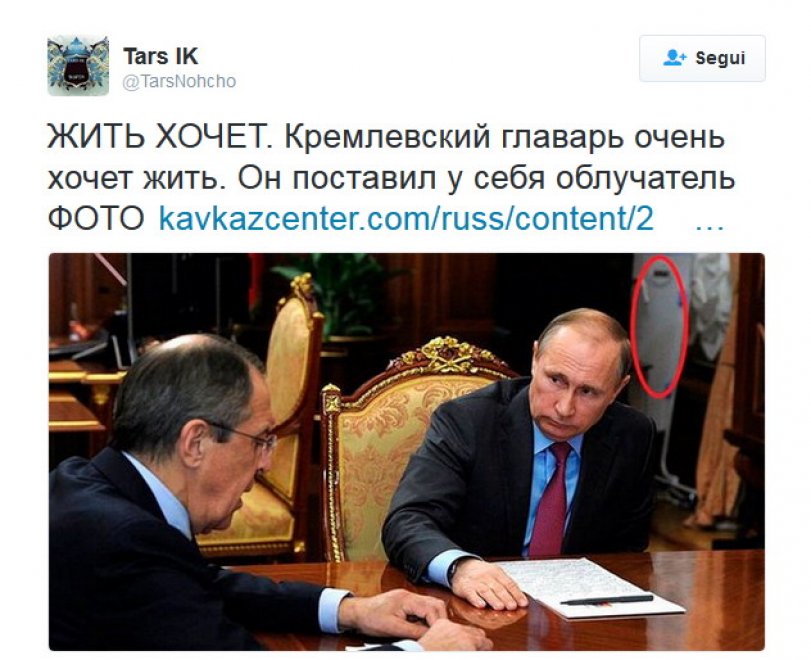 L’oggetto misterioso è stato notato da diversi utenti di Twitter che avevano visto la foto postata dall’ufficio stampa del Cremlino alla fine del colloquio tra Putin e il ministro degli Esteri Sergei Lavrov.