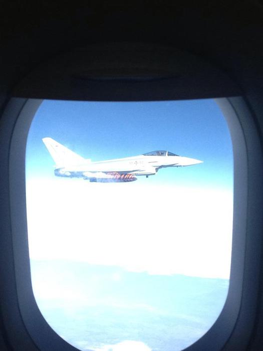 ”I due caccia viaggiavano a 100 metri da noi: vedevo chiaramente le facce dei piloti. Ho acceso il cellulare per scattare le foto e ho visto che eravamo in territorio austriaco. Ho fatto tanti viaggi in aereo ma non mi era mai capitata una cosa simile”.