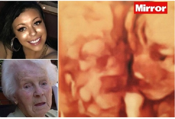 ROMA – Nell’ecografia del suo bambino ha visto il visto il volto della sua bisnonna, uccisa a maggio scorso da una brutta polmonite. Ne è convinta Sacha Rigby, giovane mamma di 22 anni in attesa del suo primo figlio. Al quotidiano britannico Daily Mirror la donna racconta l’incredibile esperienza e mostra le immagini dell’ecografia “miracolosa”.