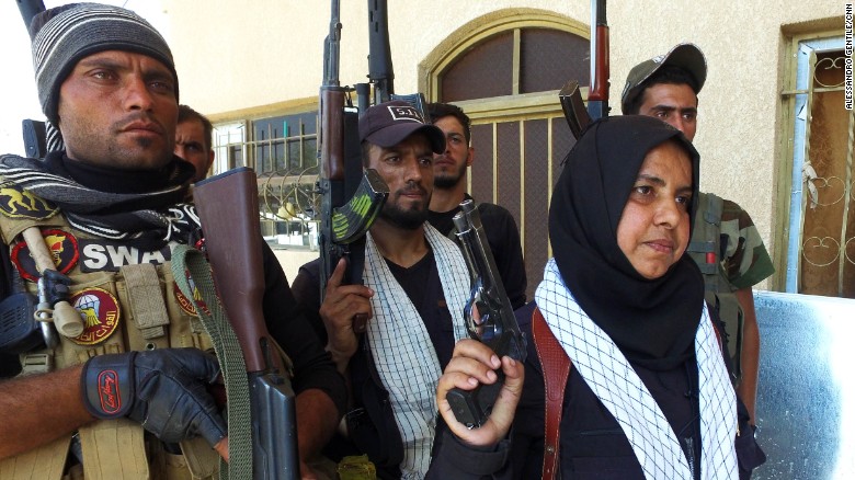 MOSUL – “Io decapito i terroristi dell’Isis e cucino le loro teste”. Wahida Mohamed, 39 anni, casalinga irachena, è il peggior incubo dei jihadisti. A capo di un contingente di 70 uomini ha liberato la città di Shirqat, 70 km a Sud di Mosul dalle bandiere nere dell’Isis. In una foto impugna un machete, circondata da militari in divisa, in altre è accanto a una mitragliatrice o imbraccia un AK-47. “E’ tutto documentato – dice alla Cnn – guardate la mia pagina Facebook”.