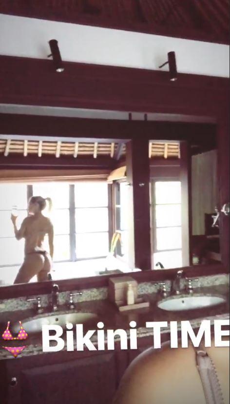 Wanda Nara inoltre pubblica anche un video in diretta dal bagno della sua camera con vista sul mare mentre si prova il costume.