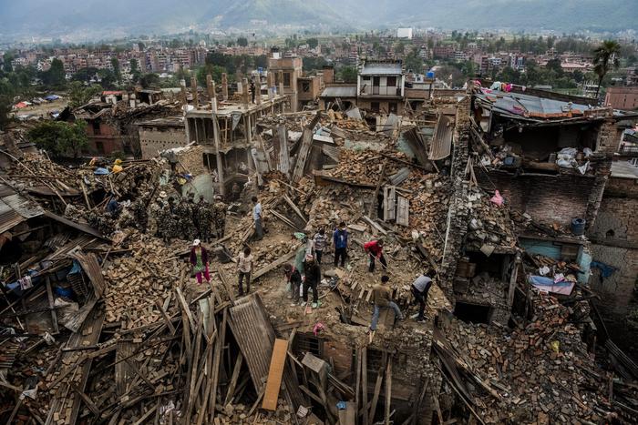 A handout image provided by the World Press Photo (WPP) organization on 18 February 2016 shows a picture by Australian photographer Daniel Berehulak for The New York Times that won Third Prize Stories in the General News Category of the 59th annual World Press Photo Contest, it was announced by the WPP Foundation in Amsterdam, The Netherlands on 18 February 2016. The picture shows residents foraging through their destroyed homes, gathering salvageable belongings on April 29, 2015 in Bhaktapur, Nepal. On the 25th of April, just before noon local time, as farmers were out in fields and people at home or work, a devastating earthquake struck Nepal, killing over 8,000 people and injuring more than 21,000 according to the United Nations Office for the Coordination of Humanitarian Affairs. EPA/DANIEL BEREHULAK / WORLD PRESS PHOTO / HANDOUT ATTENTION EDITORS : EDITORIAL USE ONLY / NO SALES / NO ARCHIVE / NO CROPPING / NO MANIPULATING / USE ONLY FOR SINGLE PUBLICATION IN CONNECTION WITH THE WORLD PRESS PHOTO AND ITS ACTIVITIES HANDOUT EDITORIAL USE ONLY/NO SALES/NO ARCHIVES HANDOUT EDITORIAL USE ONLY/NO SALES/NO ARCHIVES