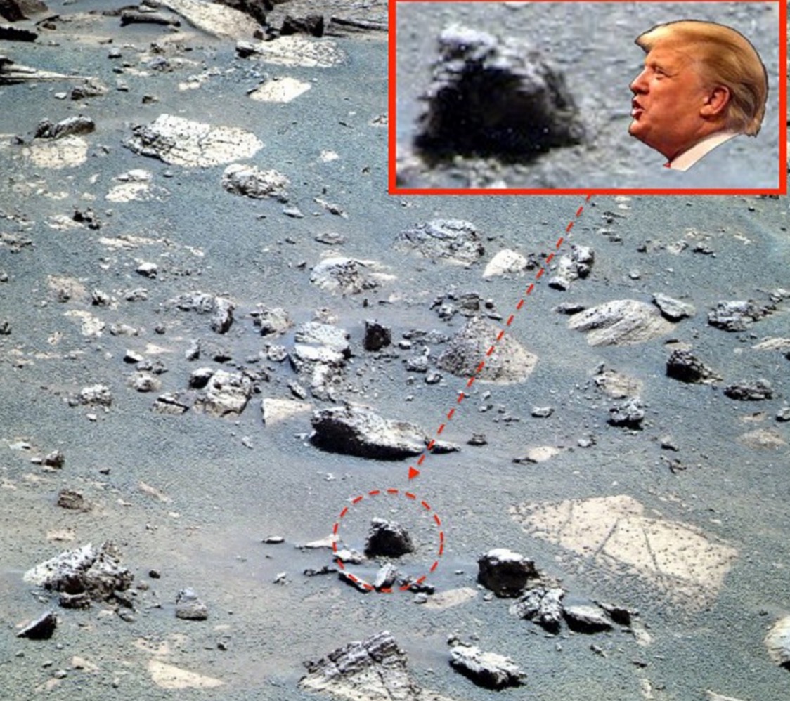 “La faccia, il naso e i capelli sembrano così tanto quelli di Trump che ho dovuto condividere con voi questa mia osservazione”, ha scritto l’esperto di Marte Scott Waring sul suo UFO Sightings Daily blog.
