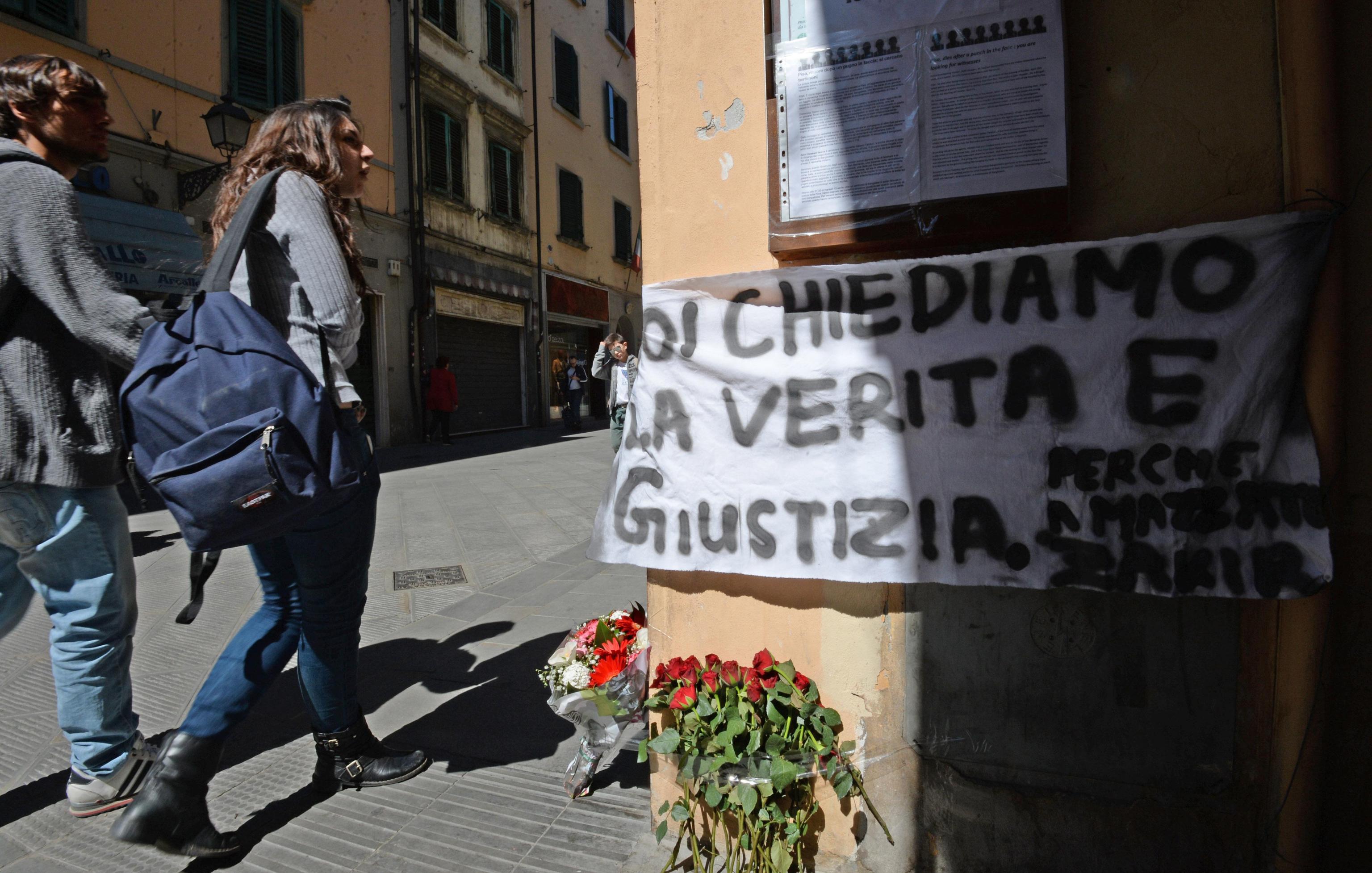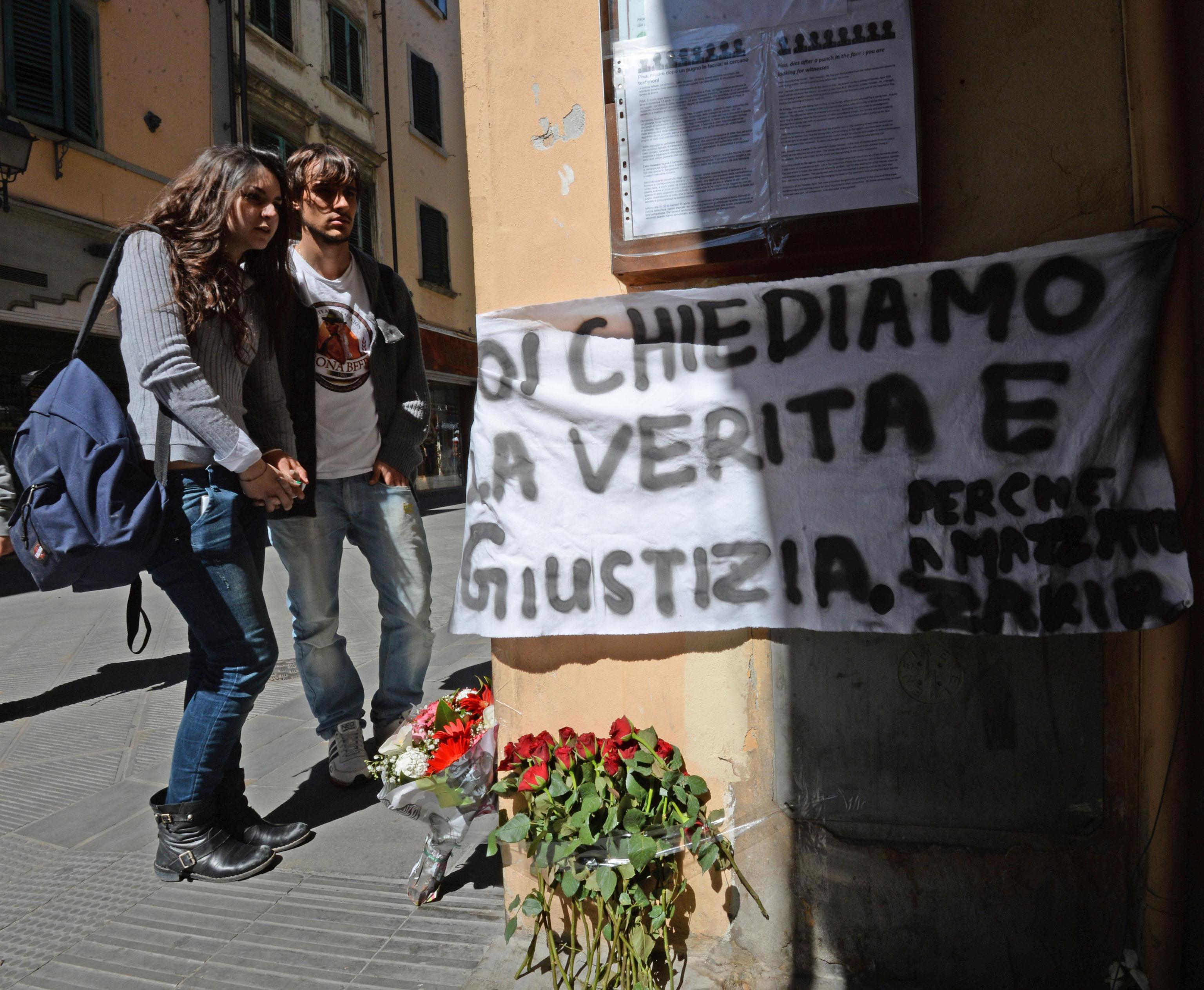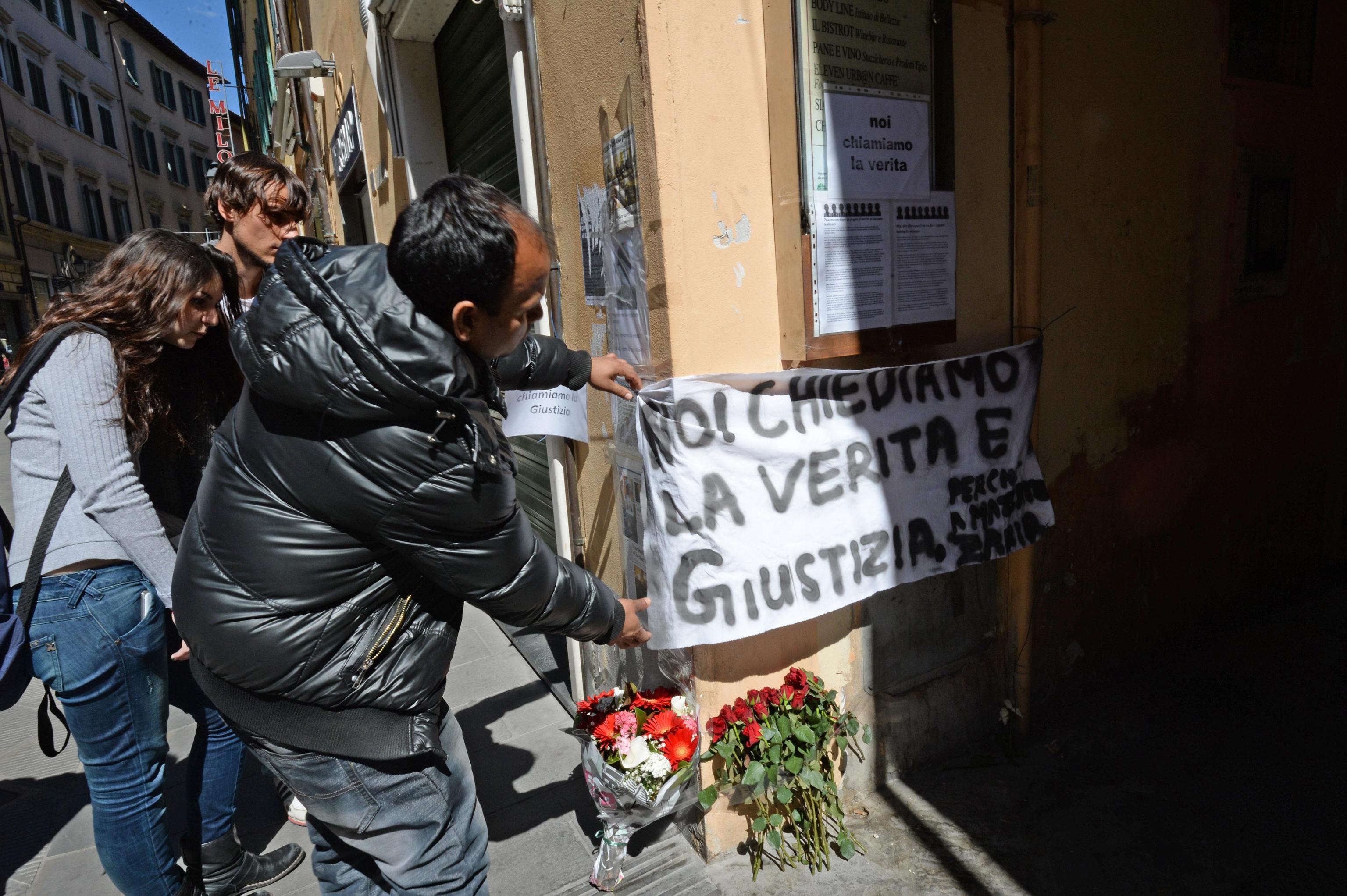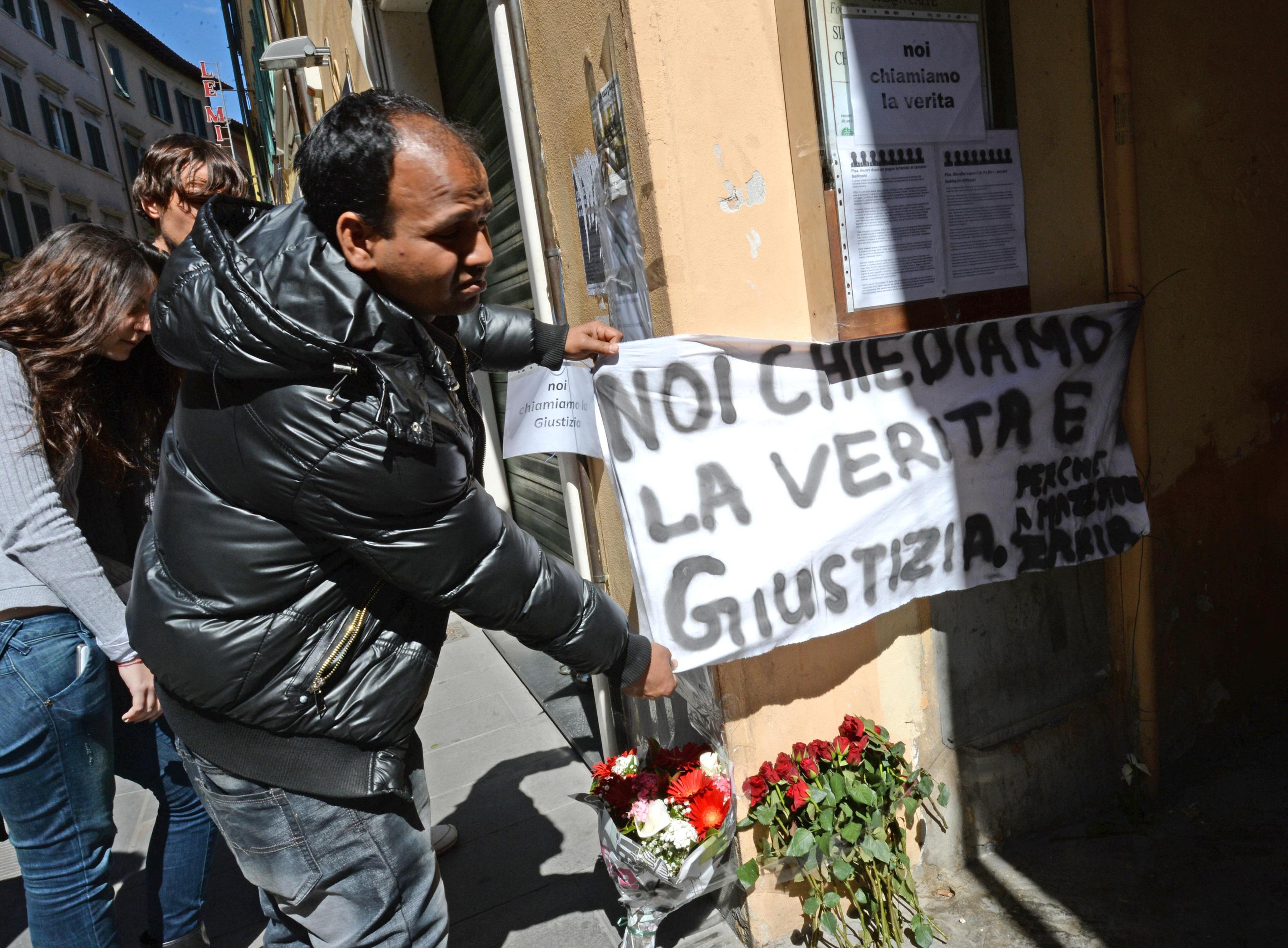 A Pisa intanto, nel punto in cui è morto il bengalese, la gente ha portato fiori ed ha esposto uno striscione in suo ricordo (Ansa)