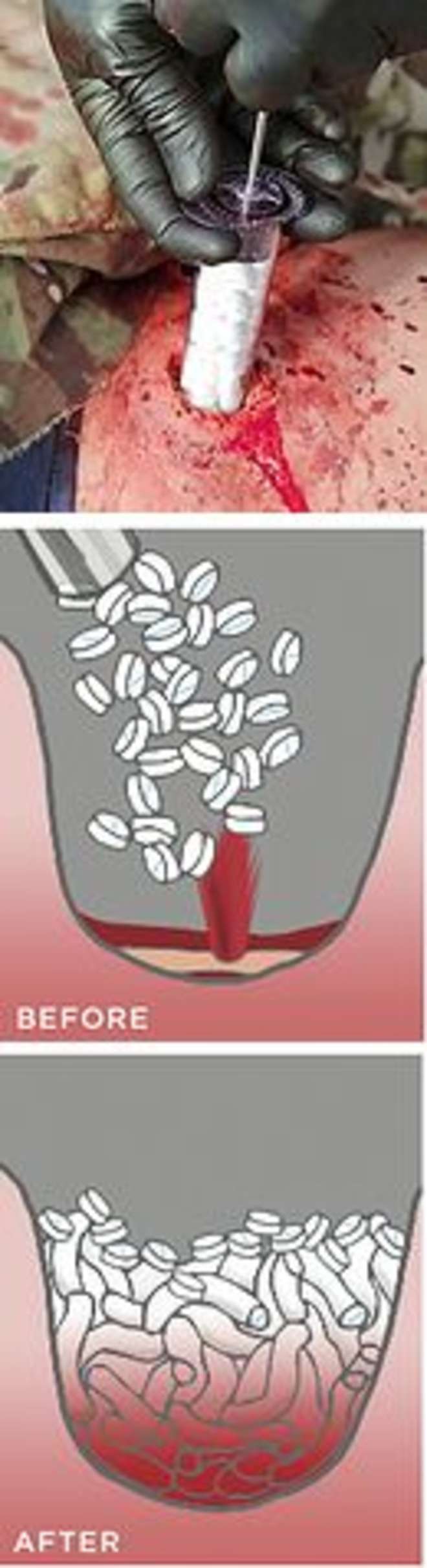 A realizzarla è stata una società statunitense con sede in Oregon, che l’ha testata sui maiali. Il sito della RevMedx mostra una Xstat inserita semplicemente nel buco lasciato da una pallottola. Qui, decine di spugnette che entrano a contatto con il sangue si fondono tra di loro fino a formare una barriera che blocca la perdita.