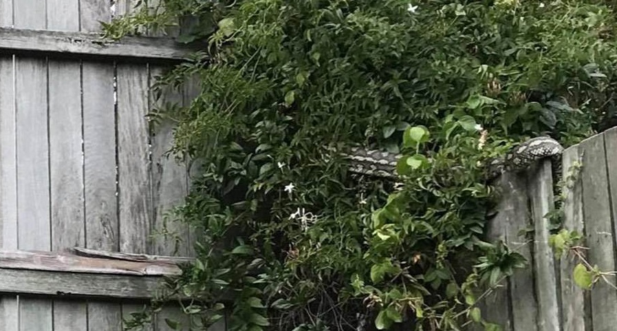 SUNSHINE COAST – Quello che sembra un innocuo giardino in realtà nasconde un pitone. Le foto le pubblica la Sunshine Coast Snake Catchers, l’organizzazione che nello stato australiano del Queensland si occupa della caccia di questi rettili. Il giardino sembra perfettamente normale con un prato e un arrampicatore verde che raggiunge la parete e la recinzione di legno.