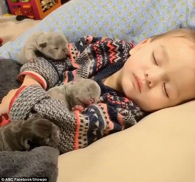 Il video, condivisi su Facebook dal marchio di abbigliamento, Showpo, mostra un bambino che dorme insieme a tre cuccioli adorabili. I piccoli strisciano su di lui per trovare la posizione migliore. Il piccolo non se ne accorge e continua a dormire tranquillamente.