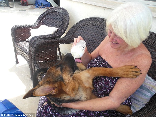 WELLING – Una giovane pastore tedesco femmina non capisce di essere un cane e si comporta come se fosse un neonato. L’animale dorme in carrozzina, usa un ciuccio e si fa dare il latte da un biberon. Karma ha cominciato ad imitare il nipote della sua padrona quando aveva solo 12 settimane di età ed ora, a cinque mesi di età, crede di essere una bambina piccola.