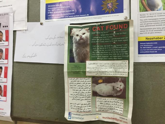 Per cercare di raggiungere questo obiettivo, è stata creata una pagina Facebook e stampato diversi volantini – in arabo e in inglese – con la sua storia. «Questa non è solo la storia di un gatto – ha commentato Anderson che continua a cercare il ricongiungimento – è una questione di speranza. Speranza di cui queste persone hanno davvero bisogno».
