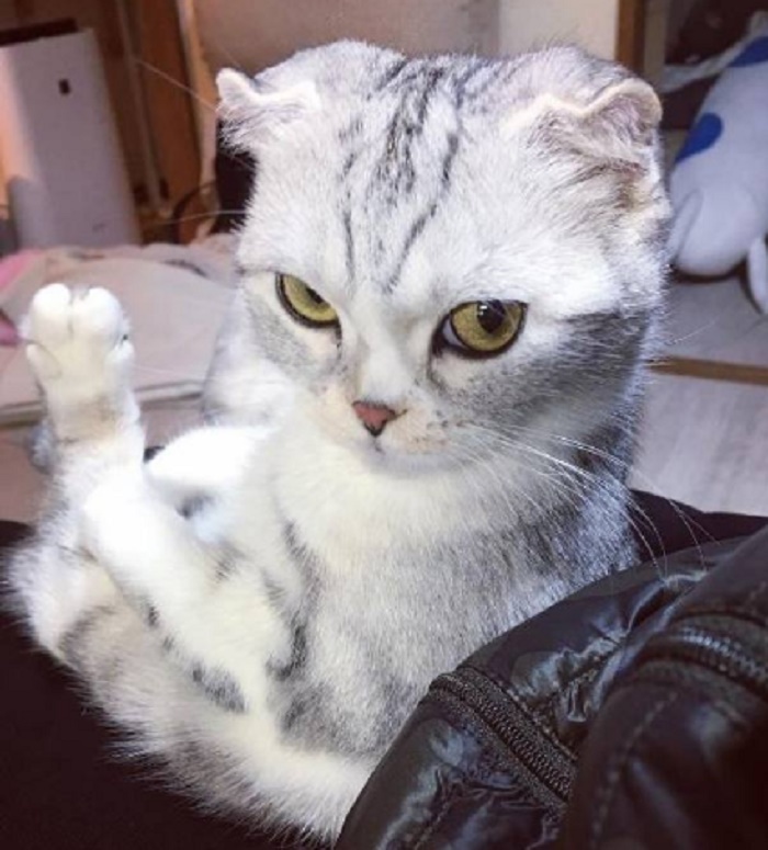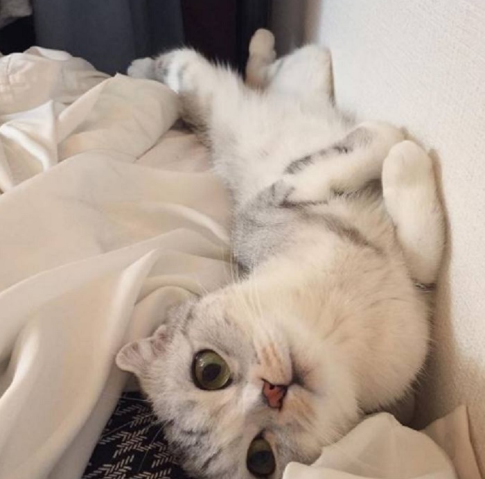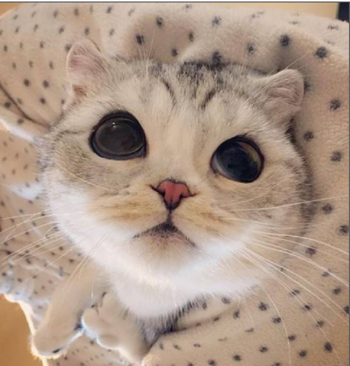 Si tratta di uno Scottish Fold, varietà di felini originaria della Scozia noto per la caratteristica di avere le orecchie piegate. Ma quello che lo distingue molto più dagli altri sono appunto proprio gli occhi grandissimi, che lo fanno assomigliare ad un manga. Non è un caso che il micio vive con altri suoi simili proprio in Giappone.
