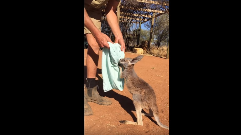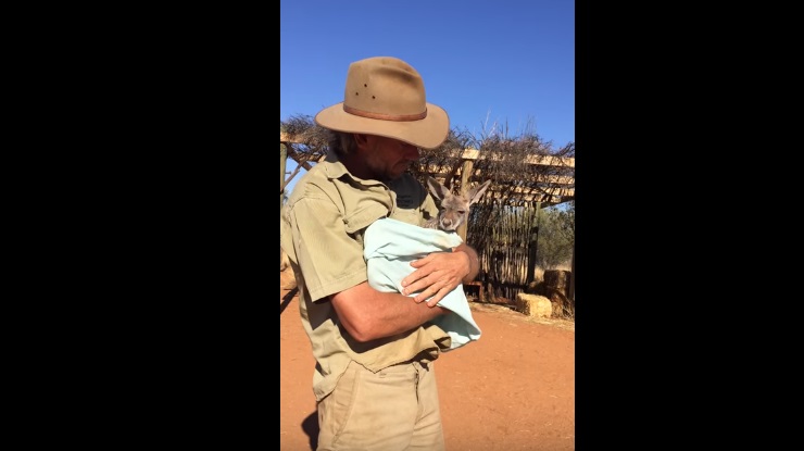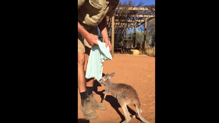 ALICE SPRINGS – Canguro orfano usa sacchetto come marsupio. Un cucciolo di canguro rimasto orfano viene salvato e curato dagli operatori del “The Kangaroo Sanctuary” di Alice Springs in Australia. Il cucciolo di nome Patrick è rimasto orfano in giocane età: per dimostrare il suo bisogno di affetto, il piccolo salta nel sacchetto che uno degli operatori gli mostra come fosse il marsupio della mamma.