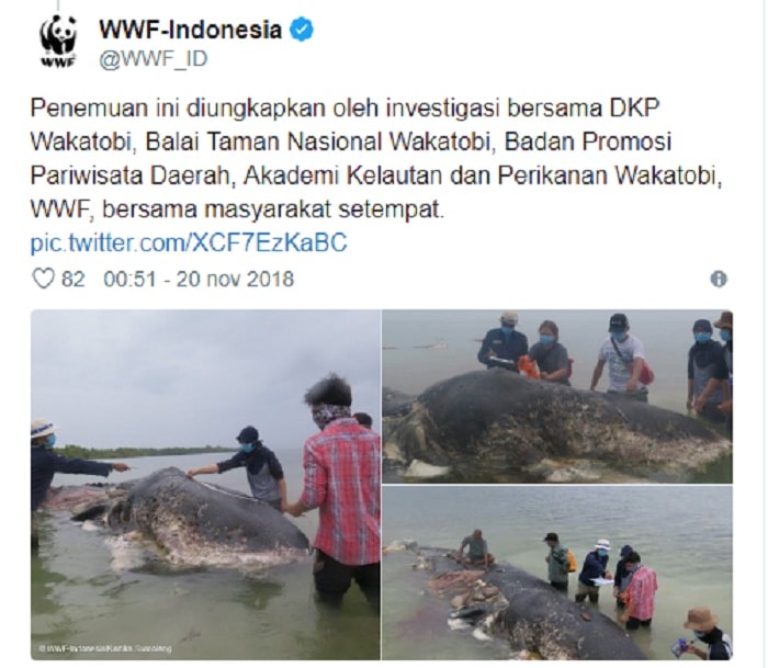 Le autorità marine locali, lunedì 19 novembre hanno recuperato il corpo dell’animale già in decomposizione insieme a Wwf e i ranger del parco nazionale di Wakatobi. In totale, nel suo stomaco hanno trovato oltre mille pezzi di plastica: ora sarà l’autopsia a dover decretare come è morto il capodoglio, anche se l’impressionante quantità di rifiuti rinvenuti al suo interno fa presupporre che possa essere stata provocata o agevolata dal materiale ingerito.