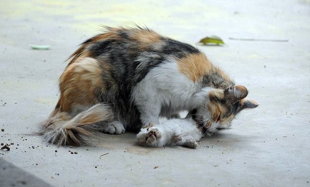 La gatta camminava avanti e indietro e miagolava incessantemente vicino ai suoi due gattini morti. la gatta si rifiutava di lasciare i cuccioli morti. La donna, dopo un po’ è riuscita a raccoglierli e a seppellirli nelle vicinanze.