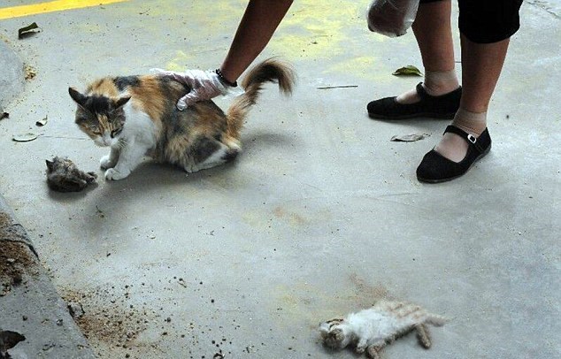 Questa volta però qualcosa è andato storto e la signora Yang, dopo aver messo a ricovero alcuni mici in un’aiuola pubblica vicino la sua casa, è tornata sul posto ed ha trovato questi gettati a terra decapitati e presi a coltellate nello stomaco. La cosa più straziante è vedere mamma gatta che prova con tutte le sue forze a rianimarli.