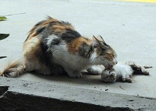La gatta camminava avanti e indietro e miagolava incessantemente vicino ai suoi due gattini morti. la gatta si rifiutava di lasciare i cuccioli morti. La donna, dopo un po’ è riuscita a raccoglierli e a seppellirli nelle vicinanze.