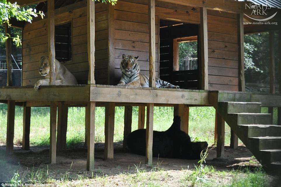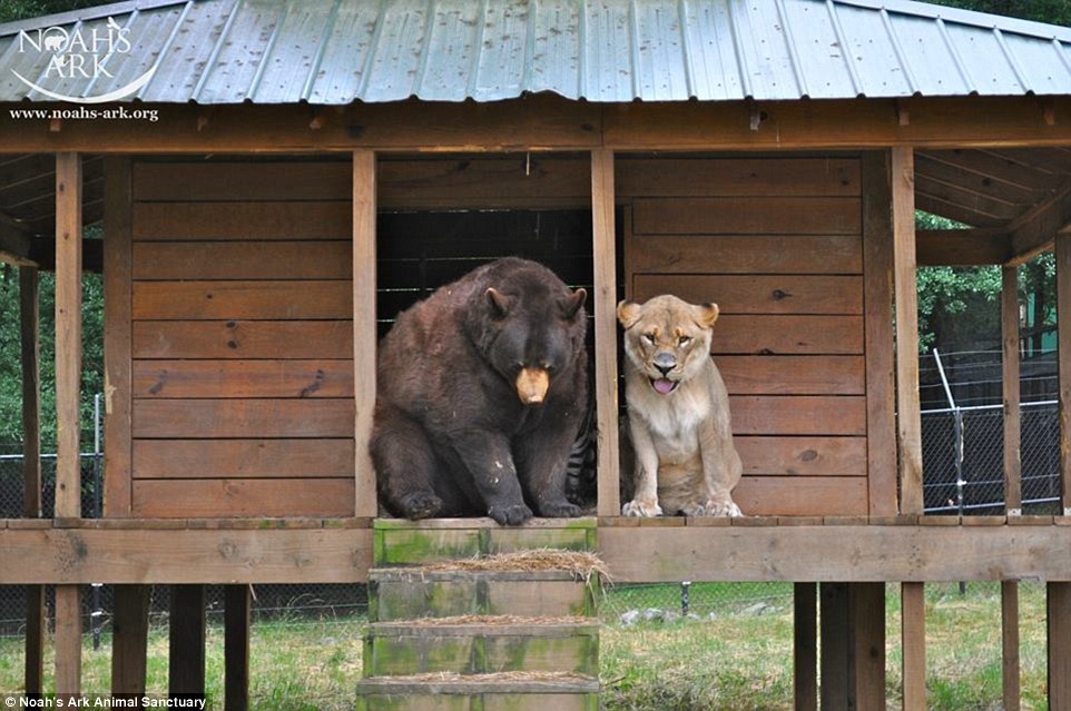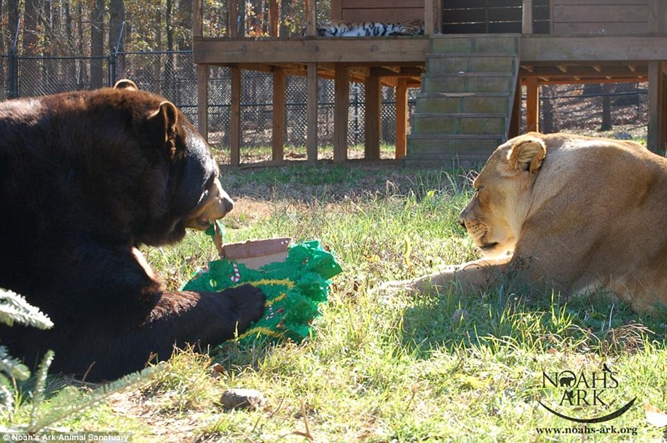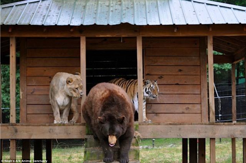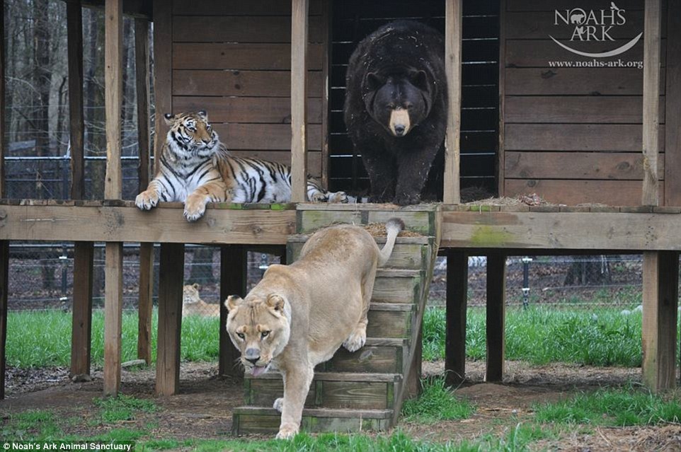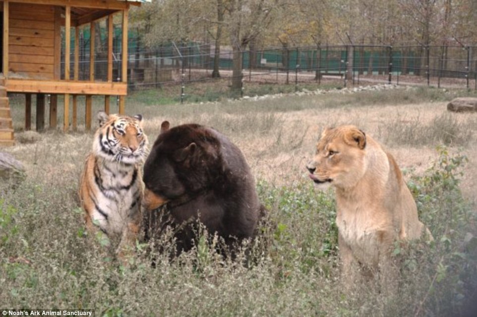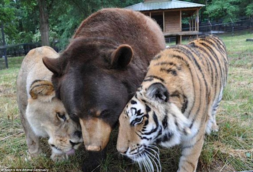 ATLANTA – Un leone, una tigre e un orso vivono insieme in amicizia in un rifugio per animali che si trova nello Stato americano della Georgia. Baloo è un orso nero americano, Leo un leone africano e Shere Khan una tigre del Bengala. A salvarli e ad averli messi insieme quando avevano meno di un anno di età, sono stati gli addetti della Noah’s Ark Animal Shelter. Il trio vive insieme in una sorta di esperimento che prosegue da tempo.