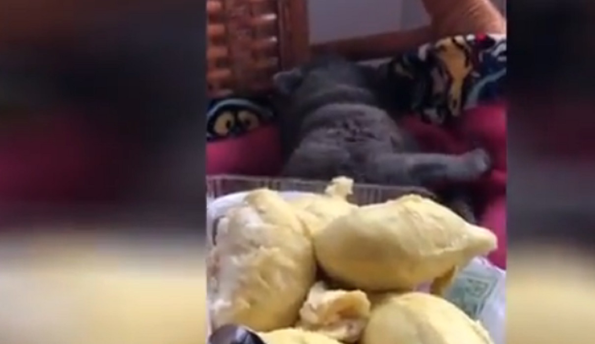 PECHINO – Il gatto Dudu odora alcuni durian, frutti tipici del nord est asiatico conosciuti per il...