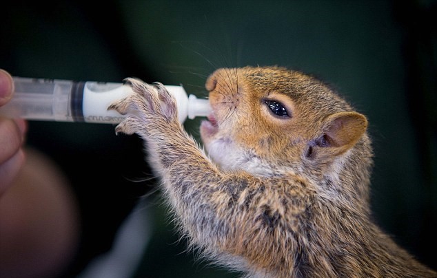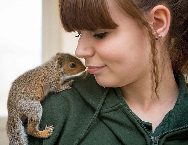 CRICKLADE – Piccoli scoiattoli orfani sono stati salvati da alcuni volontari dopo che gli alberi in cui vivevano sono stati abbattuti. I piccoli di queste foto, vengono alimentati con delle siringhe e allevati a mano. A trovarli sono stati alcuni volontari a Cricklade nel Wiltsgire inglese: i due piccolini delle foto sono stati messi insieme ad altri piccoli scoiattoli orfani dopo essere stati trovati rannicchiati all’interno di due nidi abbandonati per uccelli. Dopo essere stati alimentati per quattro settimane con le siringhe, ora hanno una cosa folta e gli occhi brillanti.