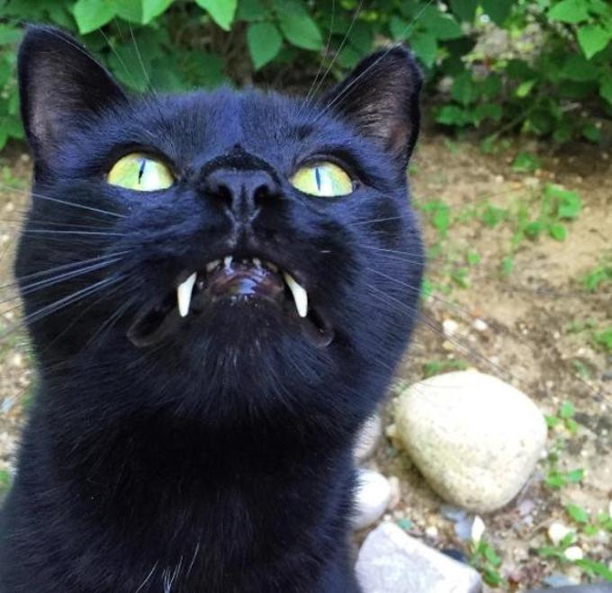 PORTLAND – Alcuni anni fa, Nicole Rienzi era in macchina con sua mamma quando un gattino nero gli ha attraversato la strada. La donna ha fatto una brusca frenata ed è scesa per recuperare l’animale. Il micio era in cattive condizioni di salute, magro, malnutrito e sporco. L’animale aveva gli occhi infettati e non riusciva ad aprirli. Mamma e figlia hanno deciso di portarlo a casa e curarlo. Nicole che vive a Portland in Oregon racconta che Sergio, questo il nome dato al randagio, non era un gatto come gli altri. Dopo aver perso i denti da latte ha cominciato a sviluppare i canini che gli sono cresciuti troppo: “I denti erano insolitamente lunghi. Il gatto sembrava un piccolo vampiro” ha commentato Nicole.