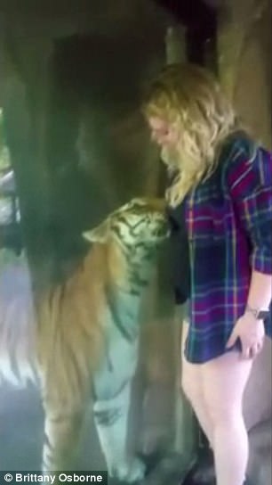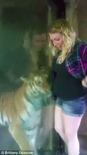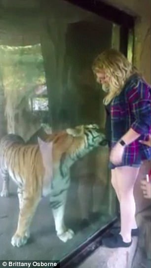 Natasha, all’epoca del video pubblicato su YouTube era alla 27esima settimana di gestazione. La sua amica Brittany Smith-Osborne, registra questo momento adorabile col telefonino. La donna è seduta e la tigre sembra volersi strusciare sulla ragazza che a questo punto decide di alzarsi in piedi.
