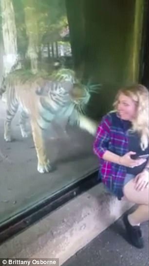 “Mostra la pancia!” dice a Natasha l’amica. La tigre non resiste e comincia a leccare il vetro in corrispettiva della pancia.