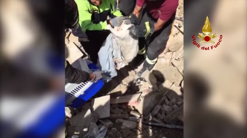 RIETI – Un miagolio debole di un gatto ha richiamato l’attenzione dei vigili del fuoco, che stavano scavando tra le macerie della casa crollata nel terremoto di Amatrice del 24 agosto. I vigili del fuoco cercavano gli effetti personali dei proprietari di casa e dopo 16 giorni non si aspettavano certo di ritrovare in vita Pietro, il gatto della famiglia, che è rimasto sepolto per tutto il tempo sotto le macerie. Il povero gatto è stato così salvato, anche se è in condizioni di salute gravi, ed è sopravvissuto nonostante l’assenza di cibo e la pochissima aria e acqua che è riuscito a trovare.