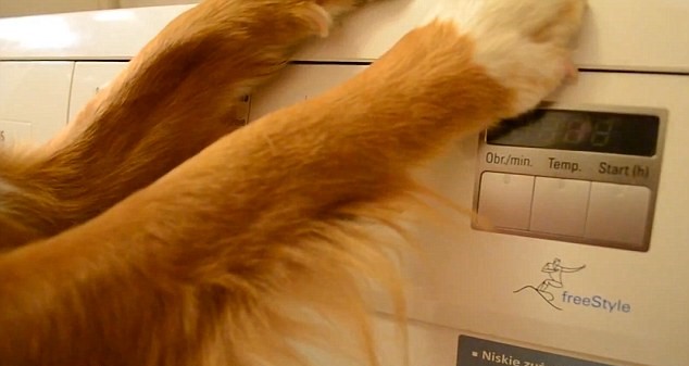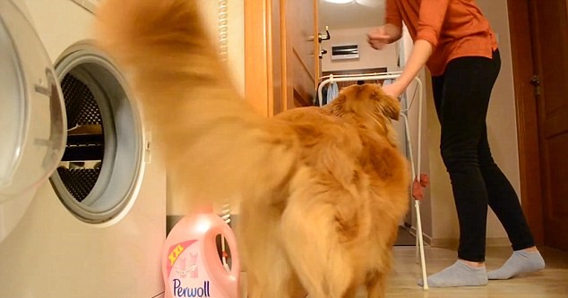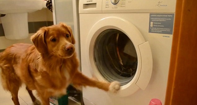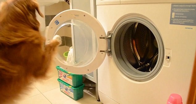 Per tutti quelli che non hanno voglia e tempo di fare il bucato, questo cane potrebbe essere la soluzione. Champis, dopo aver messo i panni è in grado di chiudere il cestello. Poi si mette a guardare la macchina che lavora seguendo il movimento con la testa. A fine lavaggio, il simpatico cane apre di nuovo il cestello e passa con la bocca i panni bagnati alla padrona che li appende allo stendino.