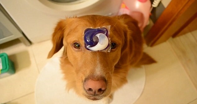 Infine, quando tutto è fuori, Champis è in grado di capire che il cestello è vuoto e di richiuderlo. La proprietaria del cane si diverte anche a posizionare sulla testa di Champis le bustine di detersivo. Poi, a fine lavoro, i due si danno il cinque.