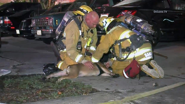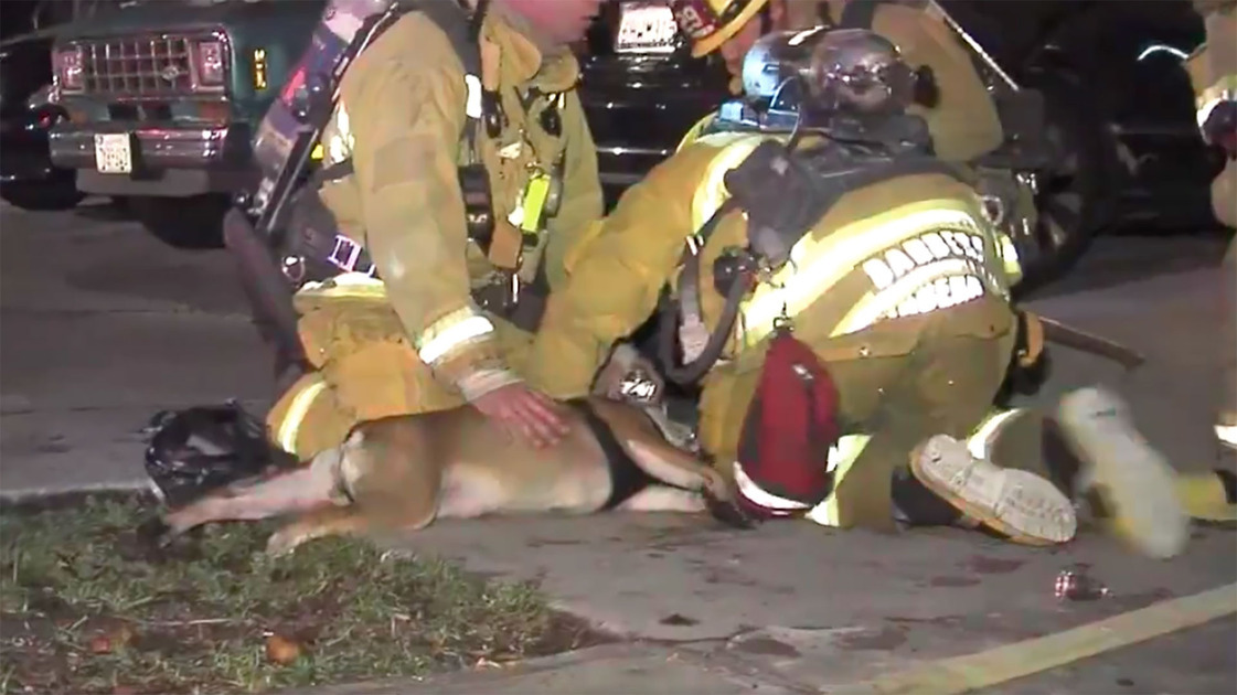 LOS ANGELES – Nel quartiere di Koreatown a Los Angeles, un cane bulldog è stato recuperato da un appartamento in fiamme. A salarlo sono stati i pompieri: l’animale si trovava solo nell’abitazione e i vigili del fuoco, dopo averlo salvato gli hanno messo una maschera d’ossigeno e dato dell’acqua. La scena è stata ripresa dalle telecamere e il video è stato caricato su YouTube.