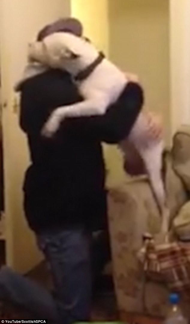 LONDRA – Cane contento travolge padrone che torna a casa. Patch è uno Staffordshire bull terrier adottato da un canile scozzese l’anno scorso. Da quel giorno, questo cane considerato appartenente ad una razza abbastanza aggressiva, è sempre stato con la sua nuova famiglia. Il quattrozampe è particolarmente legato a Mark, l’uomo di casa, con cui trascorre molto tempo.