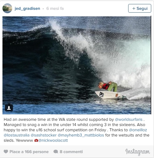 KALBARRI – Jed Gradisen a soli 13 anni è un campioncino australiano di surf. Mentre stava cavalcando le onde davanti alle coste di Kalbarri, nell’Australia Occidentale, un delfino è saltato fuori dall’acqua ed gli è piombato addosso. Il pesce è aterrato sulla schiena, sulla spalla e sul collo: il giovane si è lanciato di lato ed ha sbattuto il naso sulla tavola da surf.