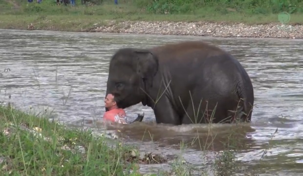 ROMA – Kham Lha è il più giovane tra i 19 elefantini che vivono nell’Elephant Nature Park, un centro di recupero per animali che si trova in Thailandia. In questo santuario, Kham Lha vive a stretto contatto con gli esseri umani ed anche con i suoi simili. Darrick Thomson è uno dei ranger della struttura. Per mettere alla prova il loro legame, Thomson ha deciso di immergersi nell’acqua facendo finta di annegare. La reazione è stata quella che probabilmente Darrick si aspettava: l’elefantino è corso in acqua per soccorrerlo in maniera del tutto spontanea.