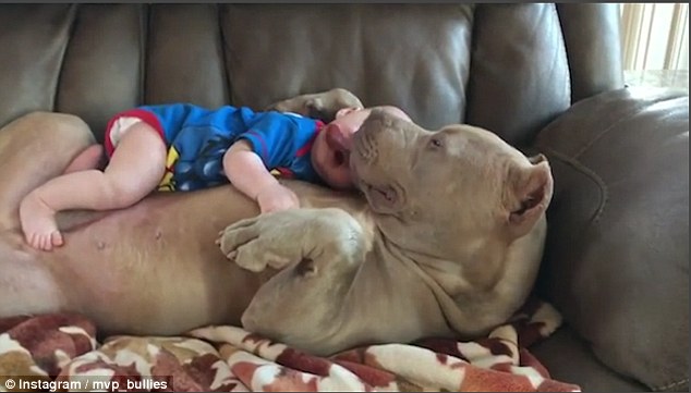 Il cane si chiama Belle ed è circa tre volte più grande del piccolo. Osservando il filmato, il cane sembra essere felice di avere su di sé il piccolino. Il video è stato postato su Instagram. L’allevatrice spiega che si tratta di un cane femmina specificatamente allevata per diventare mamma. Si tratta quindi di cani che hanno un ottimo temperamento e che non sono affatto pericolosi. “Anche se hanno un muso che assomiglia a quello del pitbull, si tratta di cani quattro a cinque volte più grandi dei pitbull che hanno un temperamento simile a quello dei Labrador” spiega la mamma allevatrice. Il bulldog americano, a quanto pare ha un’aggressività pari a zero, che li rendono l’animale domestico per la famiglia perfetta. “La nostra missione è quella di differenziare le razze e mostrare al mondo quanto siano stupefacenti questi cani” spiega ancora la Derochey.