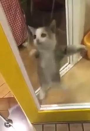 ROMA – YOUTUBE Gatto “in piedi” muove zampe per salutare padrone. Il gattino di questo filmato salta sulla porta non appena vede tornare a casa il suo padrone. Il filmato è stato pubblicato dal Daily Mail e si appresta a diventare virale. E così, mentre gli altri gatti aspettano il padrone in stanza fissandolo con il suo sguardo furbo o sfregandosi contro la sua gamba, il gatto di questo filmato sale in piedi sulle zampe posteriori e appoggia le altre zampine contro una porta a vetri.
