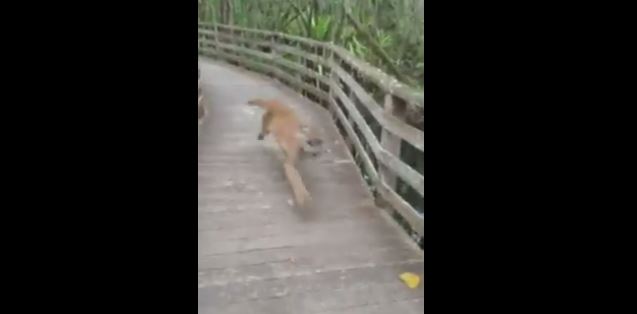 NAPLES – Durante una passeggiata al Corkscrew Swamp Sanctuary di Naples in Florida, una donna si è ritrovata faccia a faccia con una pantera sbucata all’improvviso da dietro un angolo. La pantera, alla visione della donna fugge via spaventata dalla presenza umana.