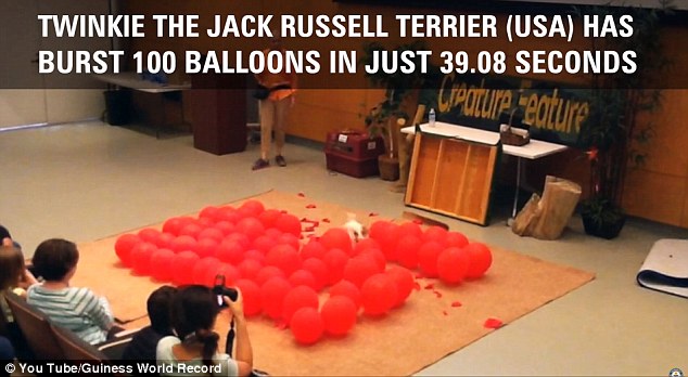 ROMA – Twinkle è un Jack Russell che vive in California con la sua addestratrice Doree Sitterly. Il cane ha stabilito un insolito record che lo ha fatto entrare nel Guinness dei primati: ha fatto esplodere 100 palloncini in 39.08 secondi battendo così il record precedente che apparteneva a Cally, un altro cane che ci aveva messo due secondi in più. Twinkle ha rotto 2,5 palloncini al secondo, scrive il Daily Mail.
