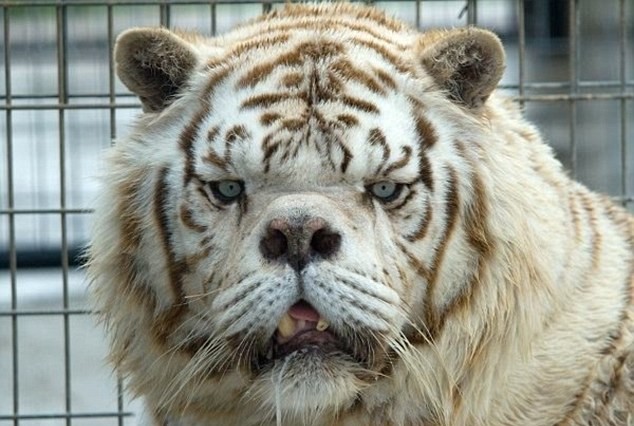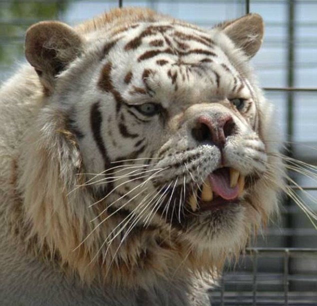 Kenny è nato con un muso corto, un viso largo e i denti sporgenti e separati. Il felino è stato tenuto in un recinto sporco. A soli due anni è stato salvato da questo allevatore che vive in Arkansas. Come spiega Susan Bass della Big Cat Rescue, queste tigri “non devono essere salvate. Semplicemente, questi animali non dovrebbero proprio esistere”.